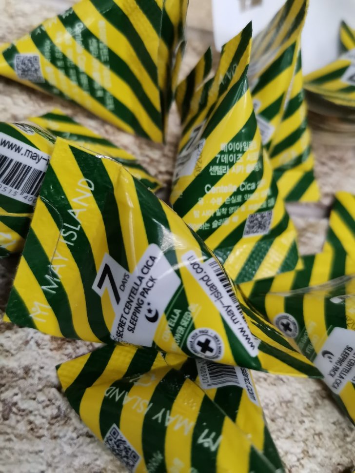 May Island 7 Days Secret Centella Cica Sleeping Pack – это ночная маска с экстрактом центеллы азиатской обеспечит интенсивный уход чувствительной и раздраженной коже. Средство было создано специально для того чтобы успокаивать чувствительную и раздраженную кожу, создавать защитный увлажняющий барьер и заживлять различные повреждения.Маска с центеллой азиатской успокаивает кожу после использования макияжа на протяжении всего дня. Технологии ухода за кожей во время сна заботятся о ней и делают ее нежной как у ребенка. Центелла азиатская заживляет и контролирует выработку себума.Экстракт центеллы азиатскойобладает противовоспалительным и ранозаживляющим действием, способствует восстановлению барьерных свойств кожи и удержанию влаги, снижает чувствительность кожи, уменьшает отеки, оказывает сосудоукрепляющее действие и уменьшает купероз. Количество:12 штук х 5 грамм СПОСОБ ПРИМЕНЕНИЯ Нанесите маску тонким слоем перед сном на заранее очищенную кожу. Распределите необходимое количество вещества легкими массажными движениями по всей поверхности кожи лица. Ампулы хватает на 3-4 раза. Достаточно маленькой капли на один раз в противном случае средство будет долго высыхать из-за большой концентрации средства.