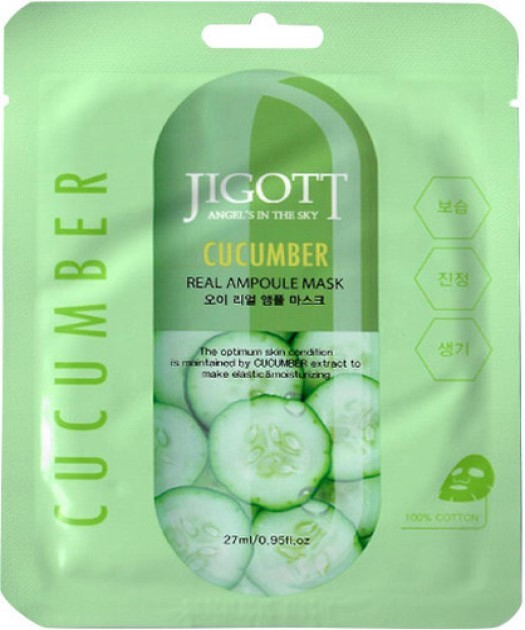 Тканевая маска для лица с огурцом Jigott Cucumber Real Ampoule Mask