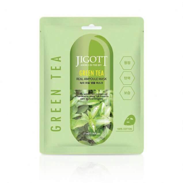 Тканевая маска для лица с зеленым чаем Jigott Green Tea Real Ampoule Mask